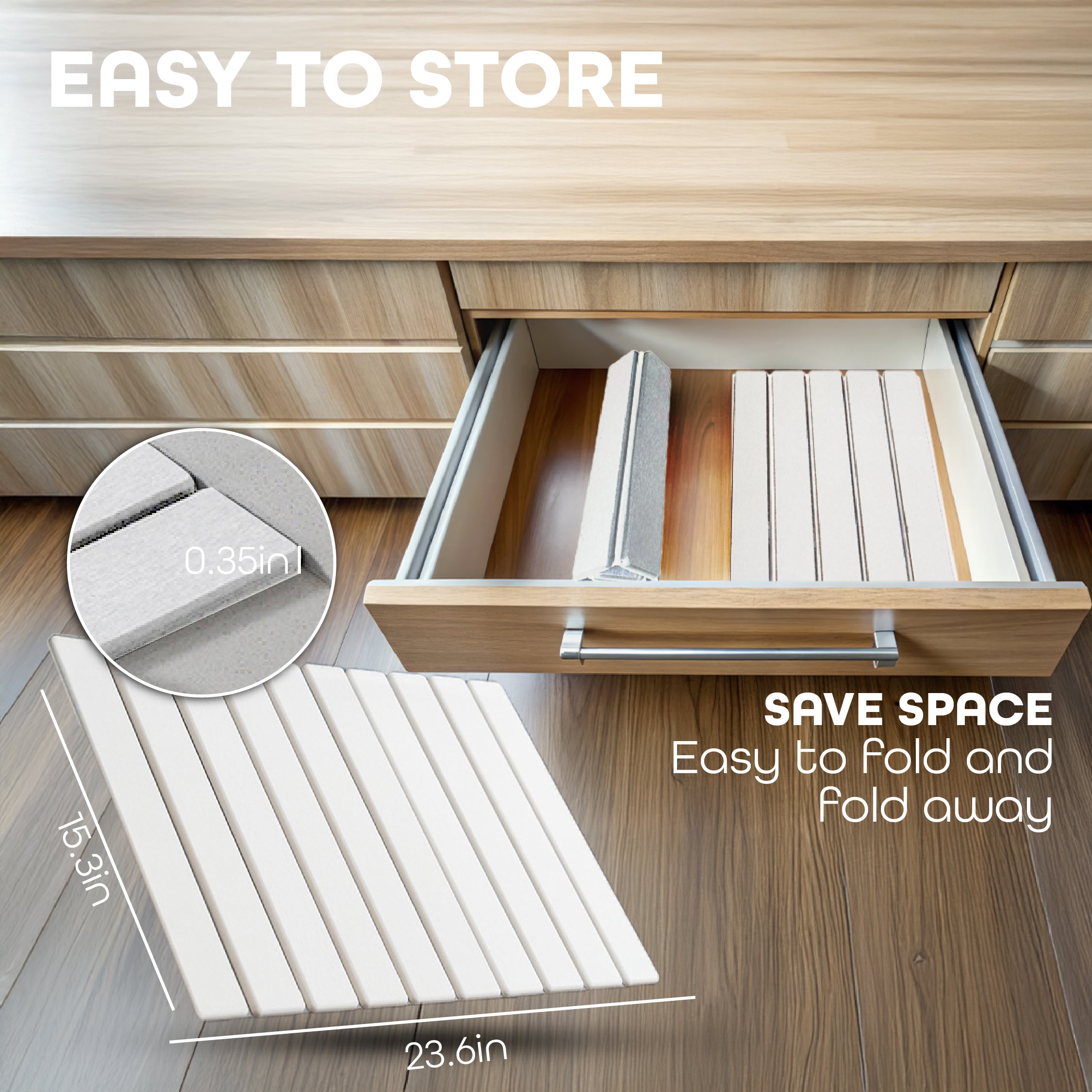 Our Quick Dry Stone Dish Mat absorbs water instantly, leaving your counters spotless and dry. Perfect for busy areas, it transforms messy spaces into tidy, organized areas.